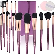 Myvedarex Makeup Brush Set 16 2pcs Makeup Brushes With Makeup Puffs Premium Synthetic Foundation Face Powder Blush Eyeshadow Kabuki Brush Kit Purple